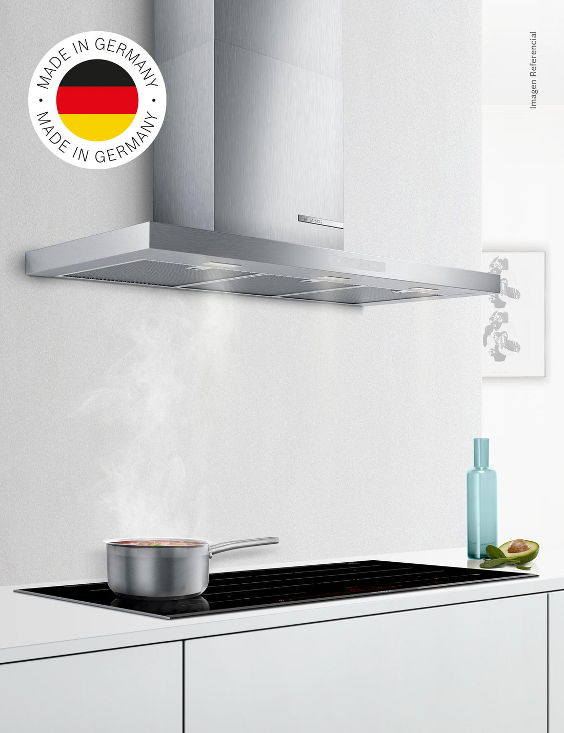 La campana decorativa Bosch une potencia, eficiencia y diseño moderno para que disfrutes de una cocina...