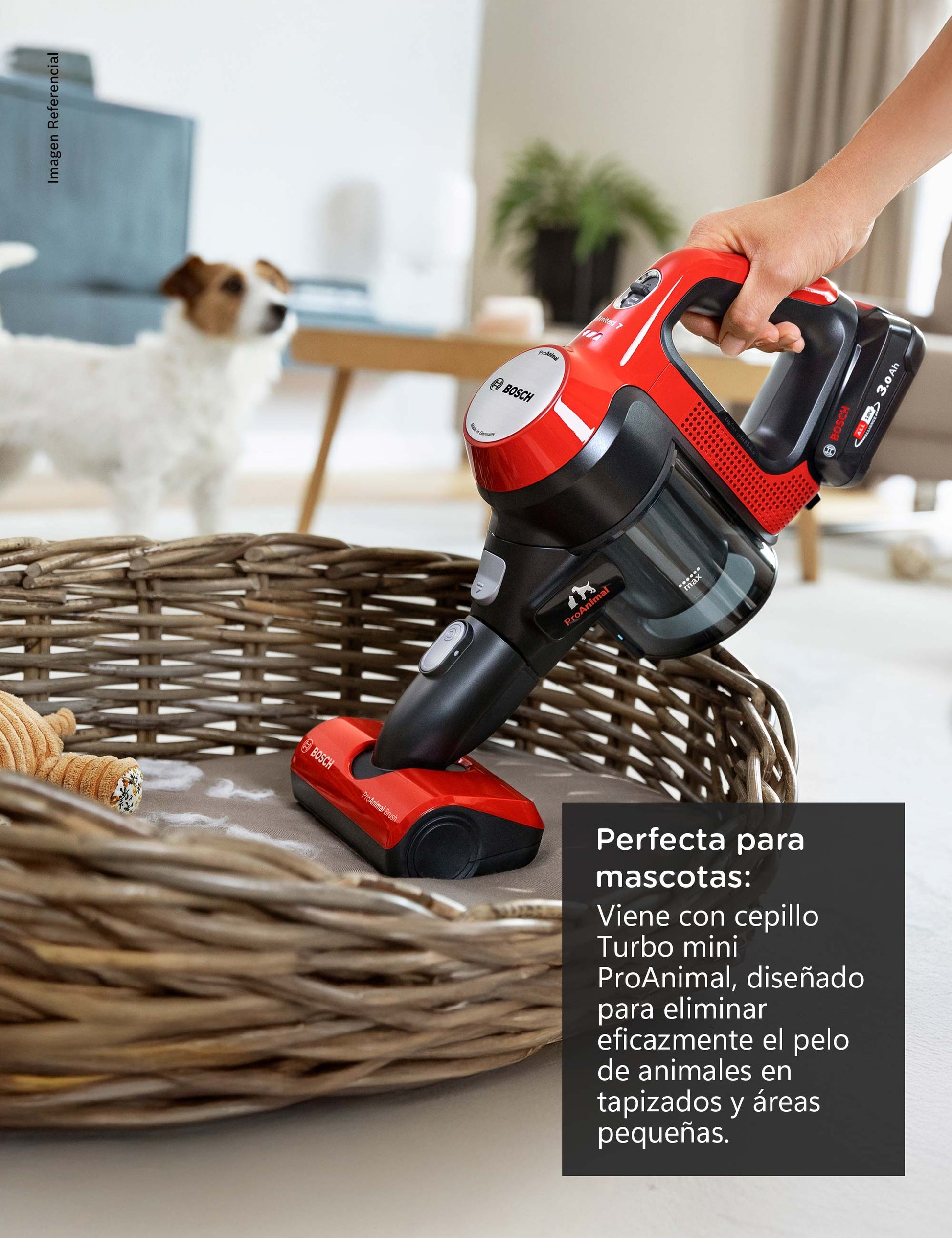 Disfruta de un rendimiento potente y constante con los aspiradores Bosch. Desarrollando y produciendo nuestros motores de alto rendimiento en Alemania durante más de 80 años. Resultados y rendimiento perfectos, DigitalSpin sin escobillas más rápido, más ligero y más eficiente para un rendimiento de limpieza impresionante, cepillo turbo mini ProAnimal: con un rodillo rojo, desarrollado especialmente para el pelo de los animales, asegura una recogida fácil y eficaz en tapizados e, incluso, en lugares difíciles de alcanzar.