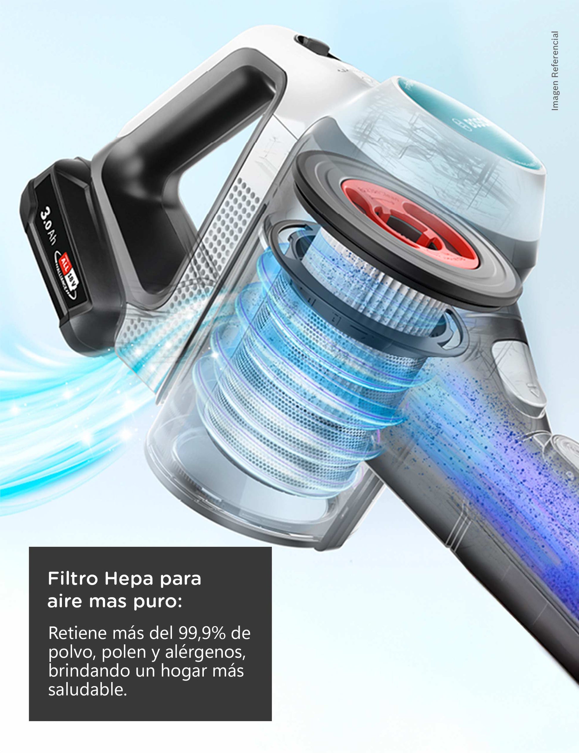 La aspiradora Bosch redefine el concepto de limpieza con su filtro HEPA de alta precisión y una eficacia hasta del 99,9 %, diseñado para purificar el aire y proteger a tu familia contra alérgenos e impurezas. Fabricada bajo los exigentes estándares de calidad que han hecho de Bosch un referente mundial, combina tecnología avanzada, durabilidad comprobada y bienestar auténtico en un solo producto.Tres modos, una experiencia personalizada