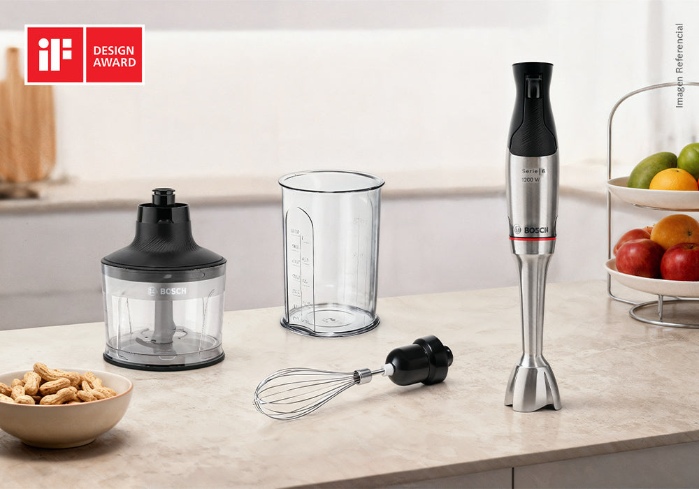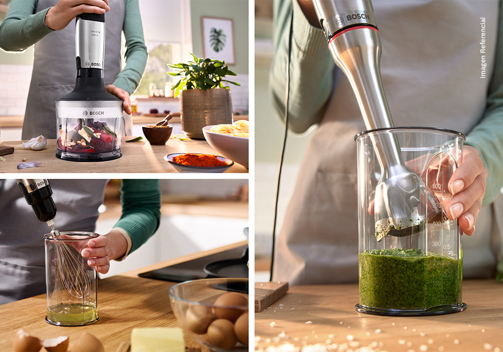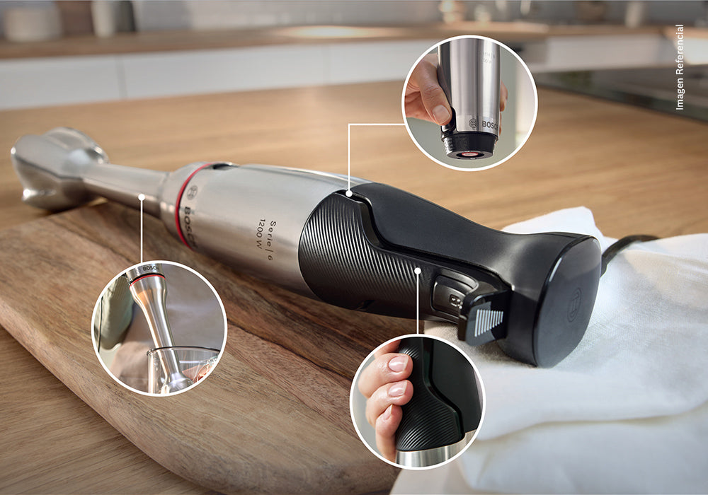 La batidora de inmersión Bosch te acompaña en cada receta: mezcla ajíes para un buen aderezo, emulsiona mayonesa casera o prepara un puré suave para tu causa limeña. Gracias a su diseño versátil, cada textura queda exactamente como la imaginas. En tu cocina, potencia y practicidad se unen para crear sabores auténticos.Ergonomía que Inspira Confianza