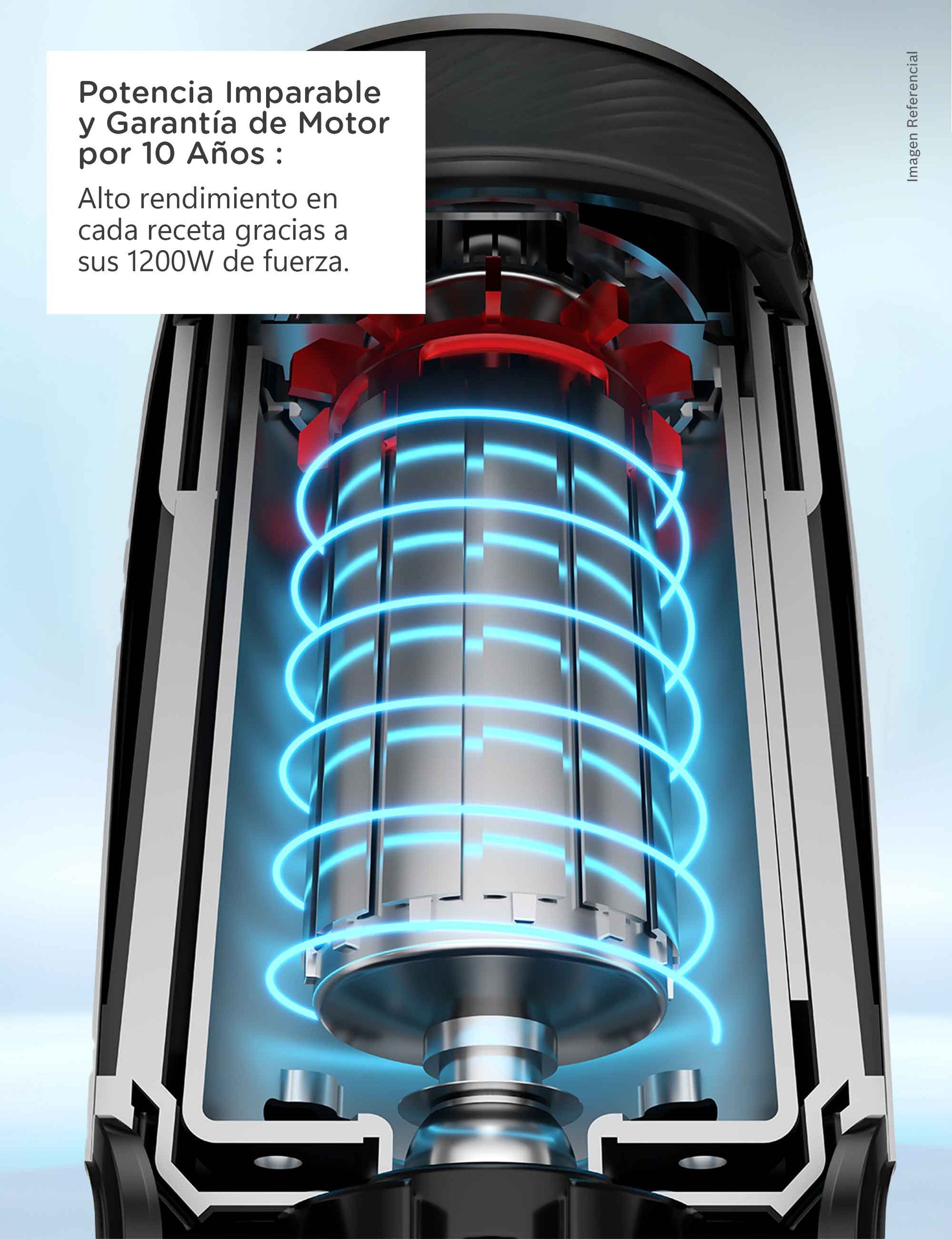 Su conector cerámico asegura un rendimiento estable durante años, no se deforma ni oxida, manteniendo la conexión perfecta entre el motor y los accesorios. Minimiza el desgaste por fricción, lo que se traduce en una mayor durabilidad de la batidora. Un detalle pequeño detalle que marca la diferencia.