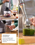 1 x Vaso mezclador/graduado, 1 x Batidora de varilla de acero inoxidable, 1 x Varilla mezcladora, 1 x Picador universalPeso neto
