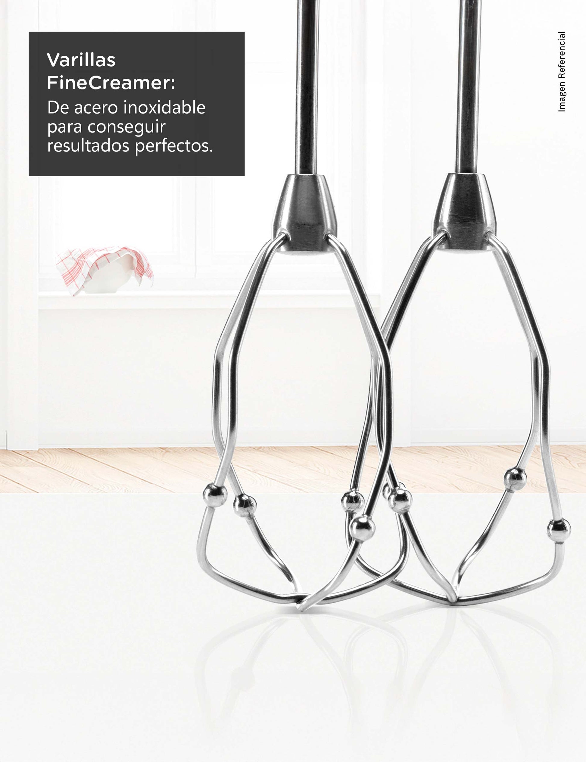 02 innovadoras FineCreamer varillas batidoras de acero inoxidable para conseguir resultados perfectos y con diseño elegante.Tan Solo un Botón