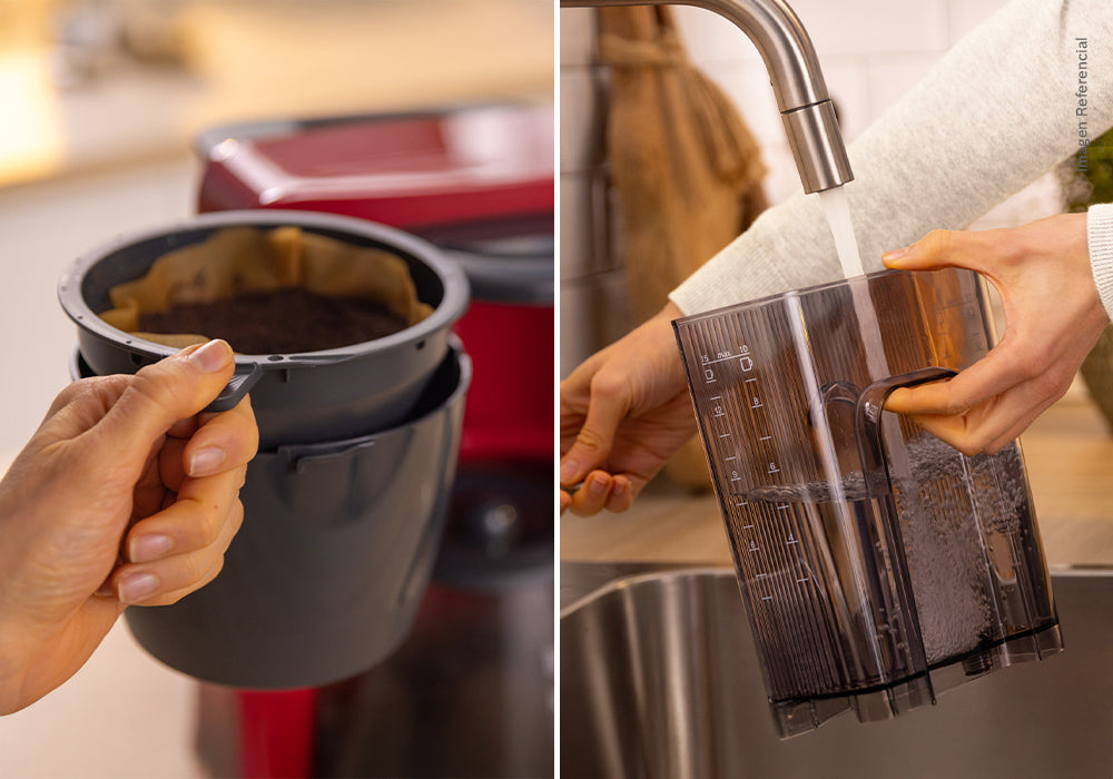 Gracias a su válvula antigoteo, la MyMoment Roja evita los derrames al retirar la jarra, manteniendo tu encimera limpia y tu café justo en el punto perfecto. Un sistema tan discreto como eficiente, que te permite servir con confianza incluso durante la preparación.