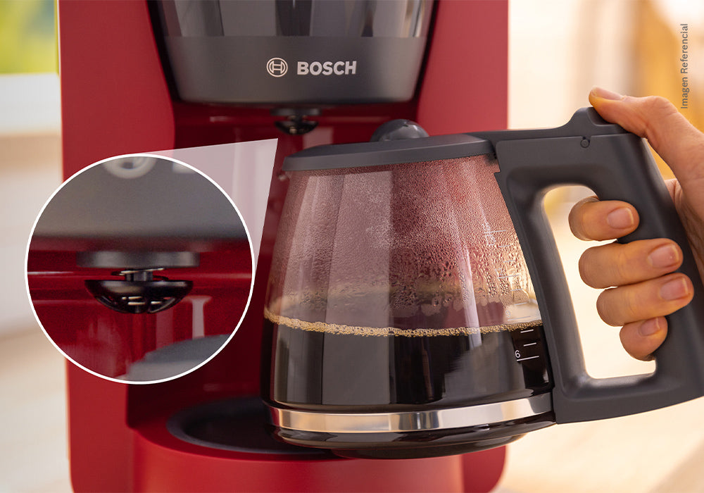 Su portafiltro desmontable y depósito de agua extraíble con indicador visible facilitan el llenado, el vaciado y la limpieza diaria. Todo ha sido diseñado para ahorrar tiempo y mantener tu cafetera siempre impecable. Con Bosch, la practicidad se siente en cada detalle.Sistema antigoteo: sin derrames, solo aroma