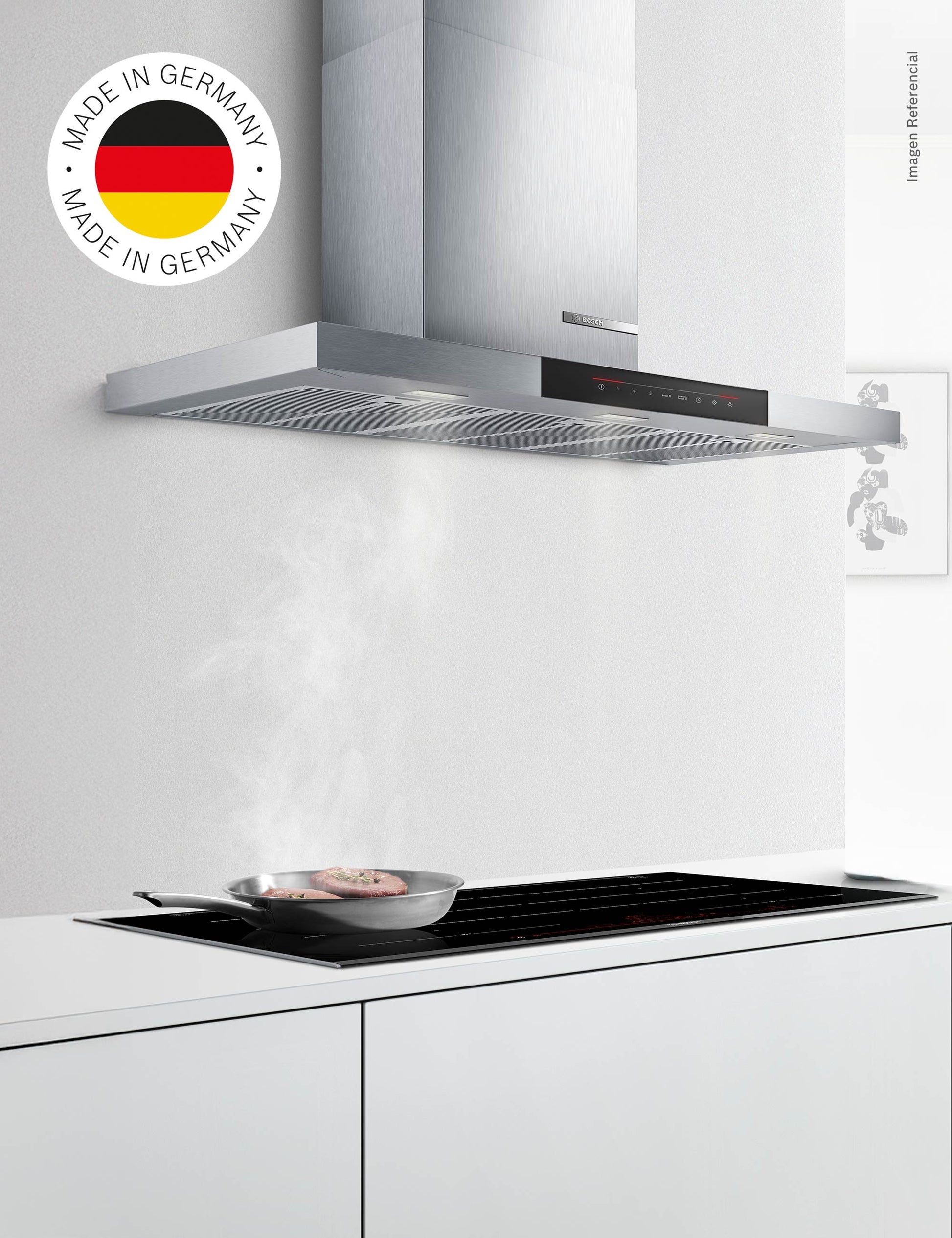 La campana decorativa Bosch aporta potencia, diseño y silencio a tu cocina. Con un elegante acabado en acero inoxidable y un funcionamiento ultra eficiente, convierte tu espacio en un ambiente más limpio y agradable mientras cocinas.