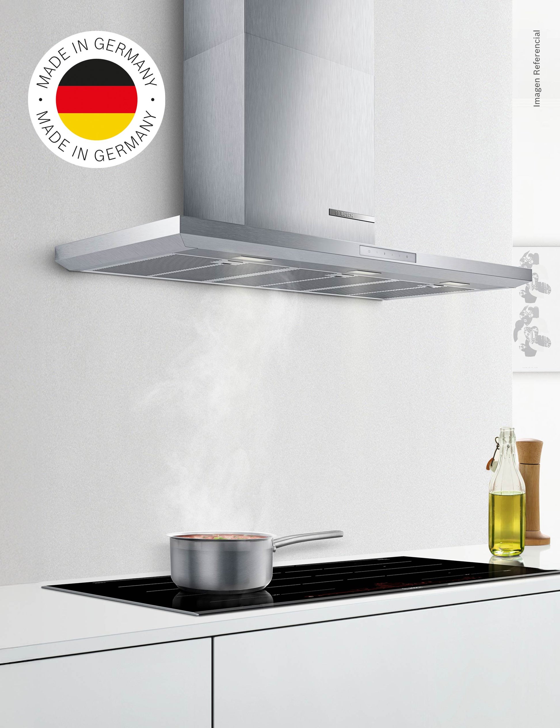 No se trata solo de eliminar olores y humo, sino de disfrutar de un ambiente más agradable y con mejor visibilidad. La iluminación de Bosch resalta tus alimentos, facilitando la preparación de cada receta, mientras su potencia asegura una extracción rápida y efectiva. Todo en un diseño elegante y moderno que se integra a tu cocina, trabajando de forma silenciosa para que solo disfrutes de lo que realmente importa: el placer de cocinar.Filtro Multicapa + Cubierta de Acero