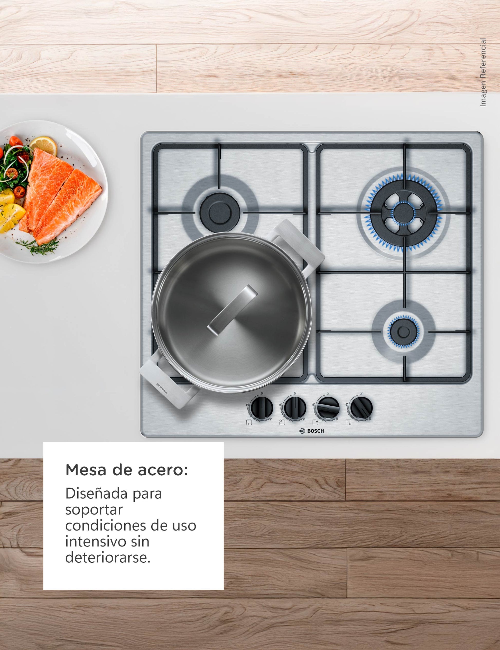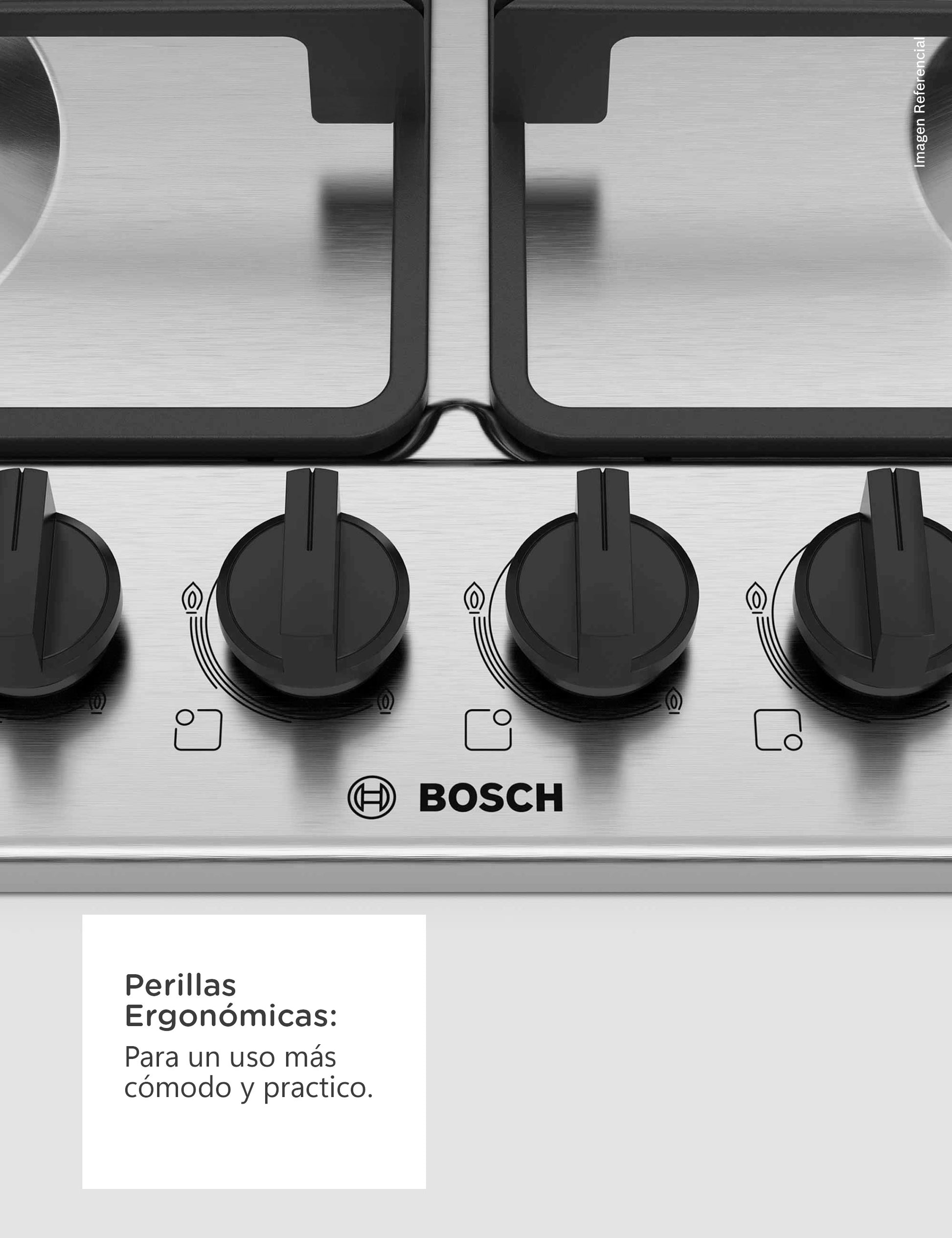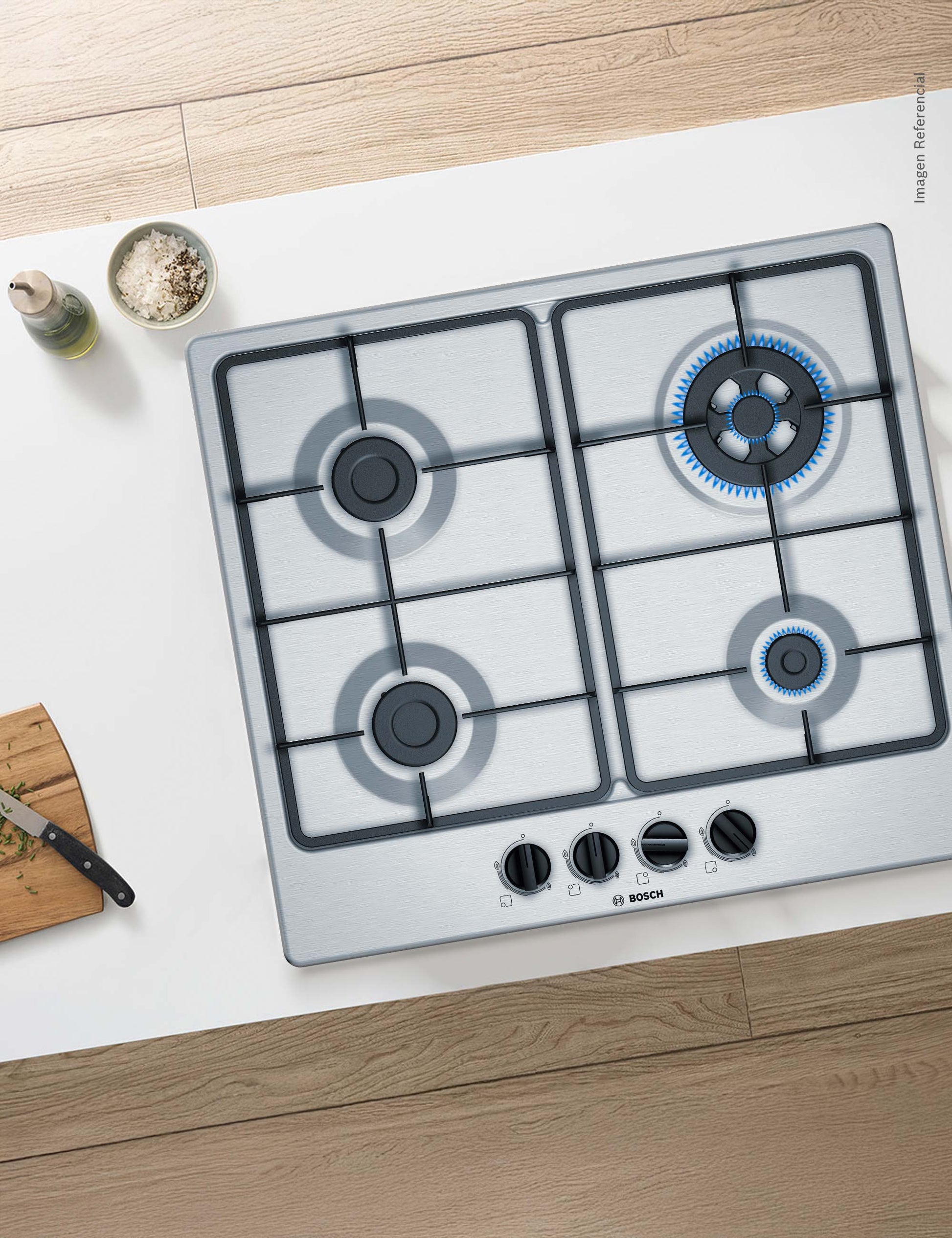 La encimera a gas Bosch combina diseño moderno, seguridad y eficiencia para tu cocina. Con sus 3 quemadores de alta potencia y quemador PRO, tendrás la flexibilidad de cocinar desde platos rápidos hasta preparaciones más elaboradas con total comodidad.