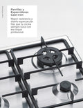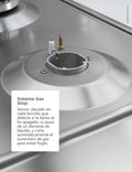 Las perillas ergonómicas están diseñadas para ofrecer un agarre firme, cómodo y preciso, facilitando el ajuste de la llama de manera intuitiva.Sistema de seguridad gas stop