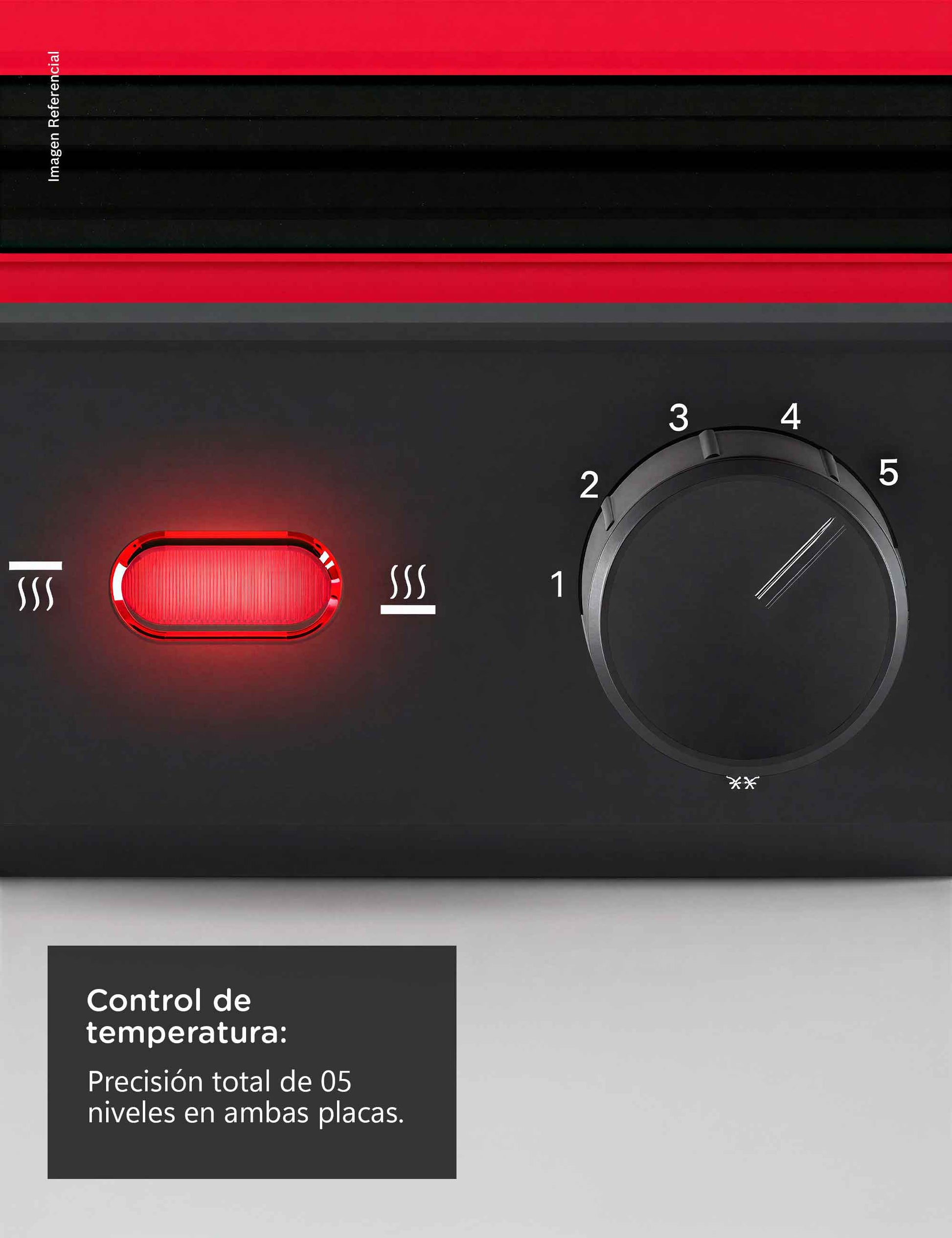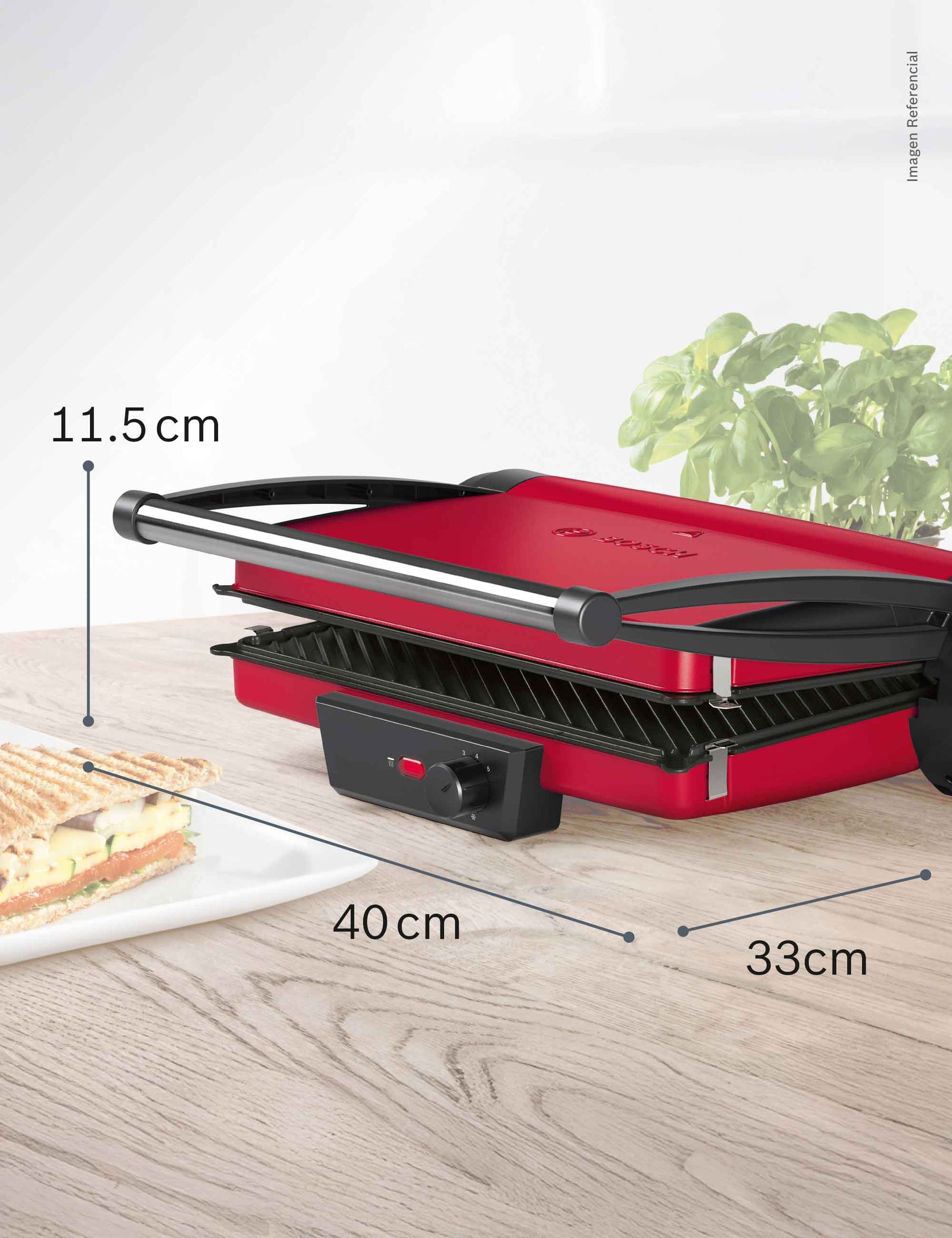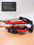 Equipada con luz piloto que indica cuándo se alcanza la temperatura ideal y un sistema de bloqueo estable que garantiza seguridad durante el uso, esta parrilla combina elegancia con funcionalidad. Su acabado en un vibrante color rojo con detalles metálicos convierten esta parrilla en un elemento decorativo dentro de tu cocina.