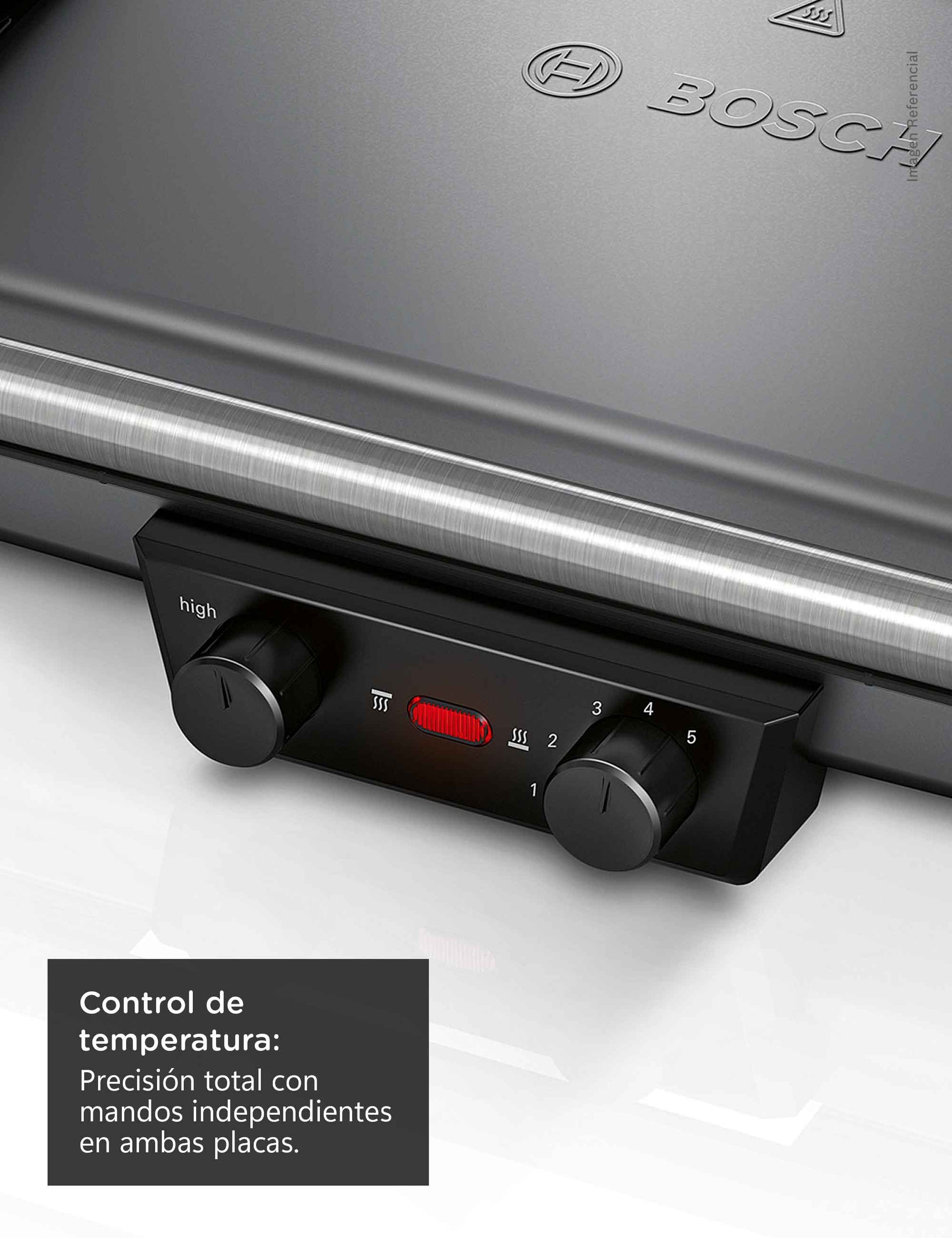 Podrás ajustar el calor de cada placa según el tipo de preparación. La placa inferior cuenta con 5 niveles de intensidad, perfecta para cocinar distintos ingredientes al mismo tiempo, mientras que la placa superior ofrece 2 niveles (Low & High) que brindan mayor control al momento de gratinar o mantener los alimentos calientes. Cocina a tu ritmo, con la precisión y comodidad que solo Bosch puede ofrecer.Un Kit Completo para máxima Funcionalidad