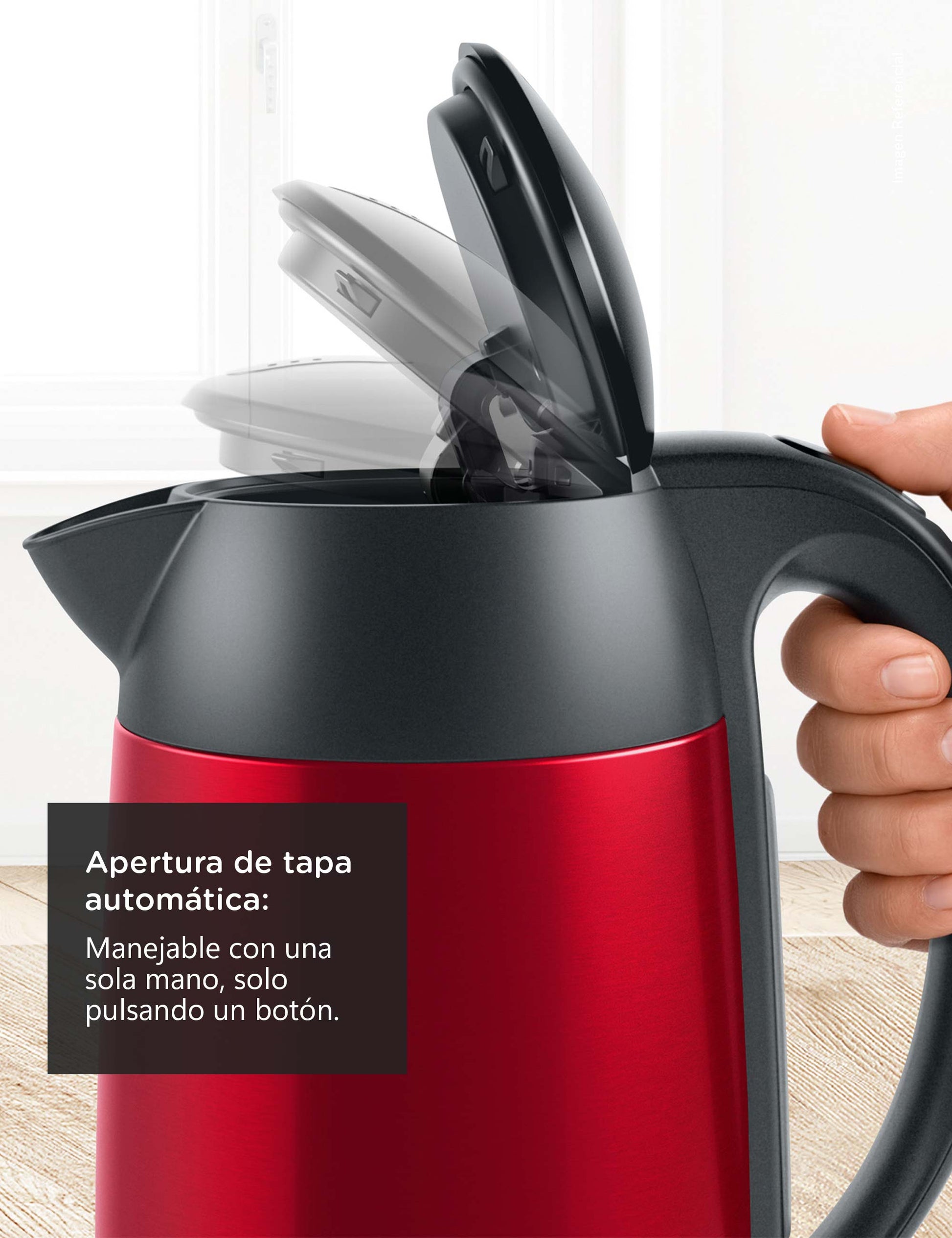 Filtro anti-impurezas en la boquilla.Gire el Hervidor en cualquier Dirección en la Base de 360°