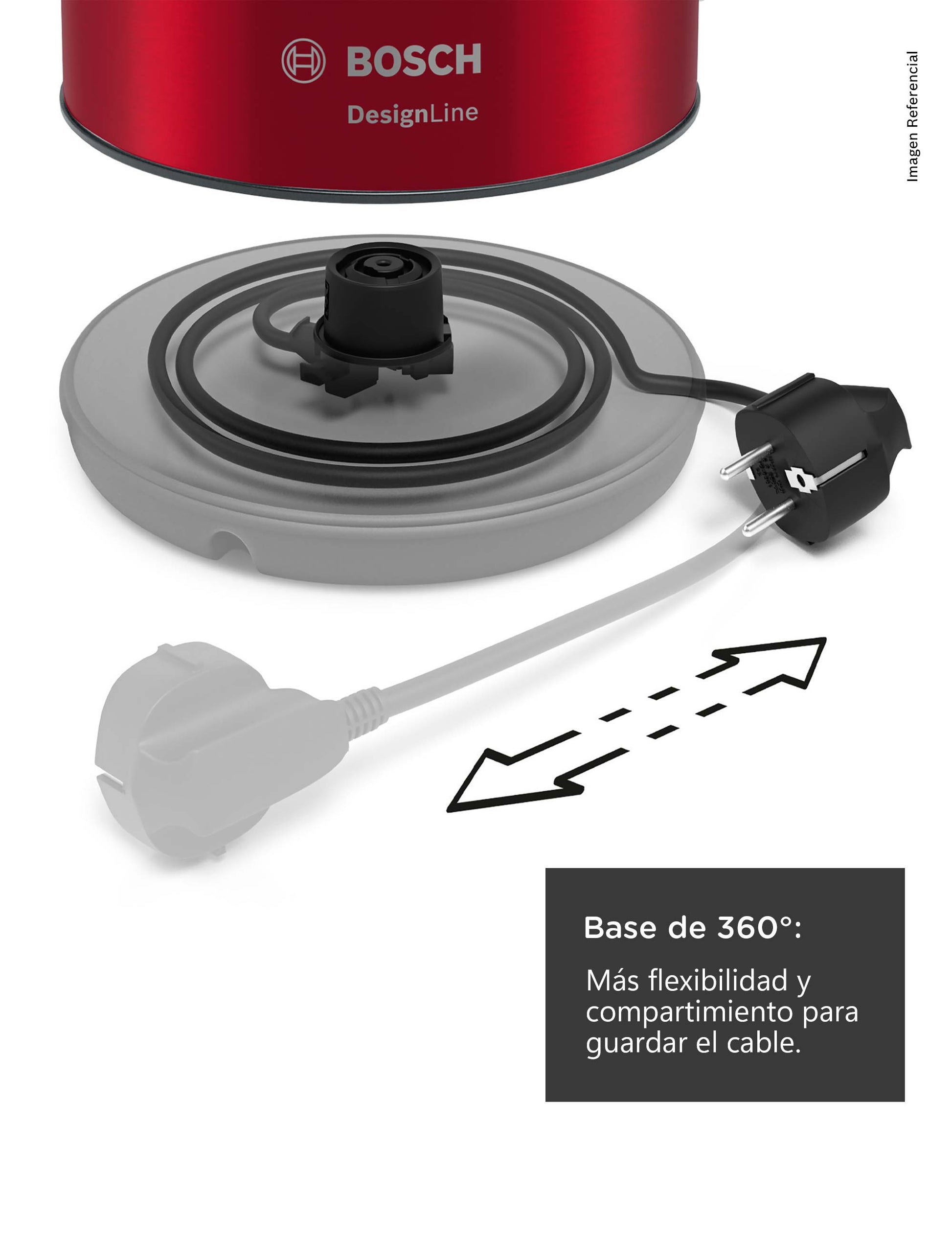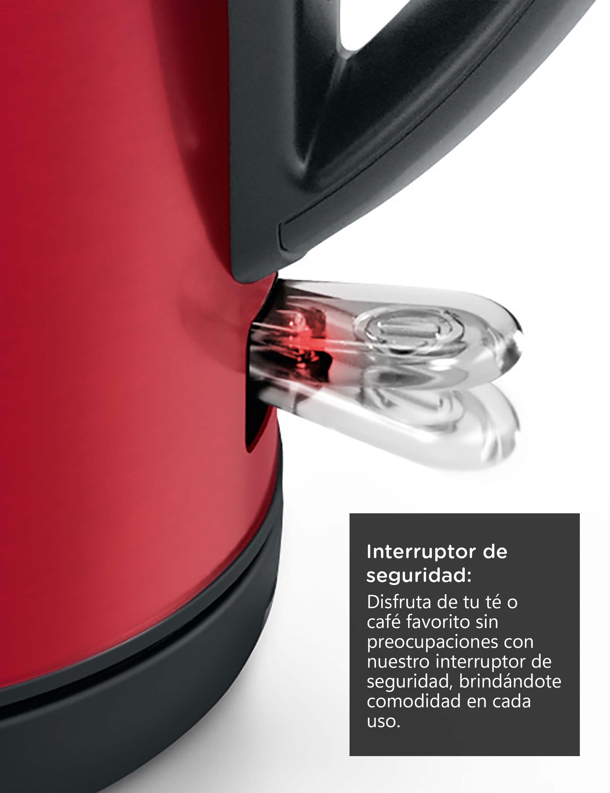 El hervidor se calienta independientemente de dónde lo coloque en la base. La estación base de 360 grados significa más flexibilidad y una posición cómoda del mango. Dado que el cable está conectado a la base, el hervidor se puede llevar donde lo necesite.Máxima Seguridad