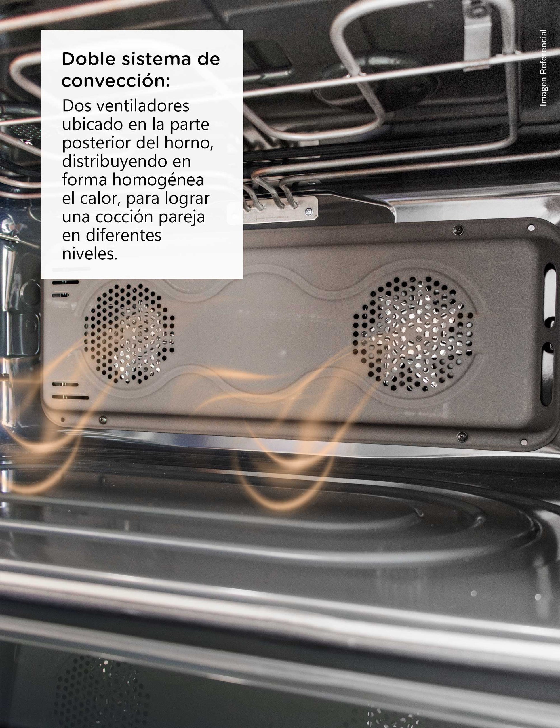 Gracias al diseño inteligente del horno, puedes retirar tus preparaciones de forma práctica y segura, sin esfuerzo. Además, sus componentes desmontables permiten una limpieza interna más rápida y accesible.Especificaciones técnicas