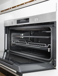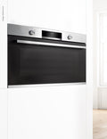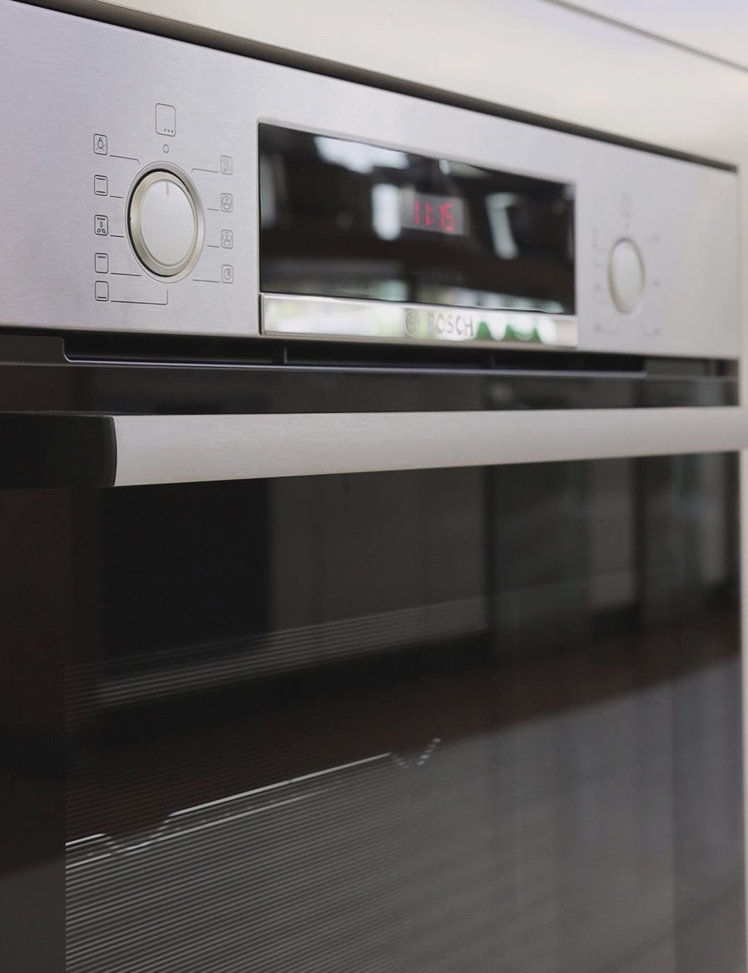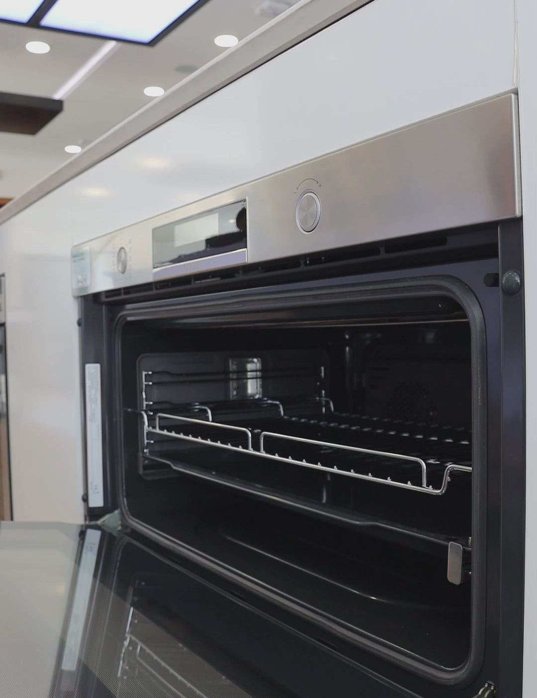 El horno empotrado multifunción Bosch de 90cm con aire caliente, doble sistema de convección, doble iluminación interior, timer electrónico con paro de cocción y 10 funciones. Cada detalle está pensado para hacer de tu cocina un espacio más seguro, moderno y eficiente.