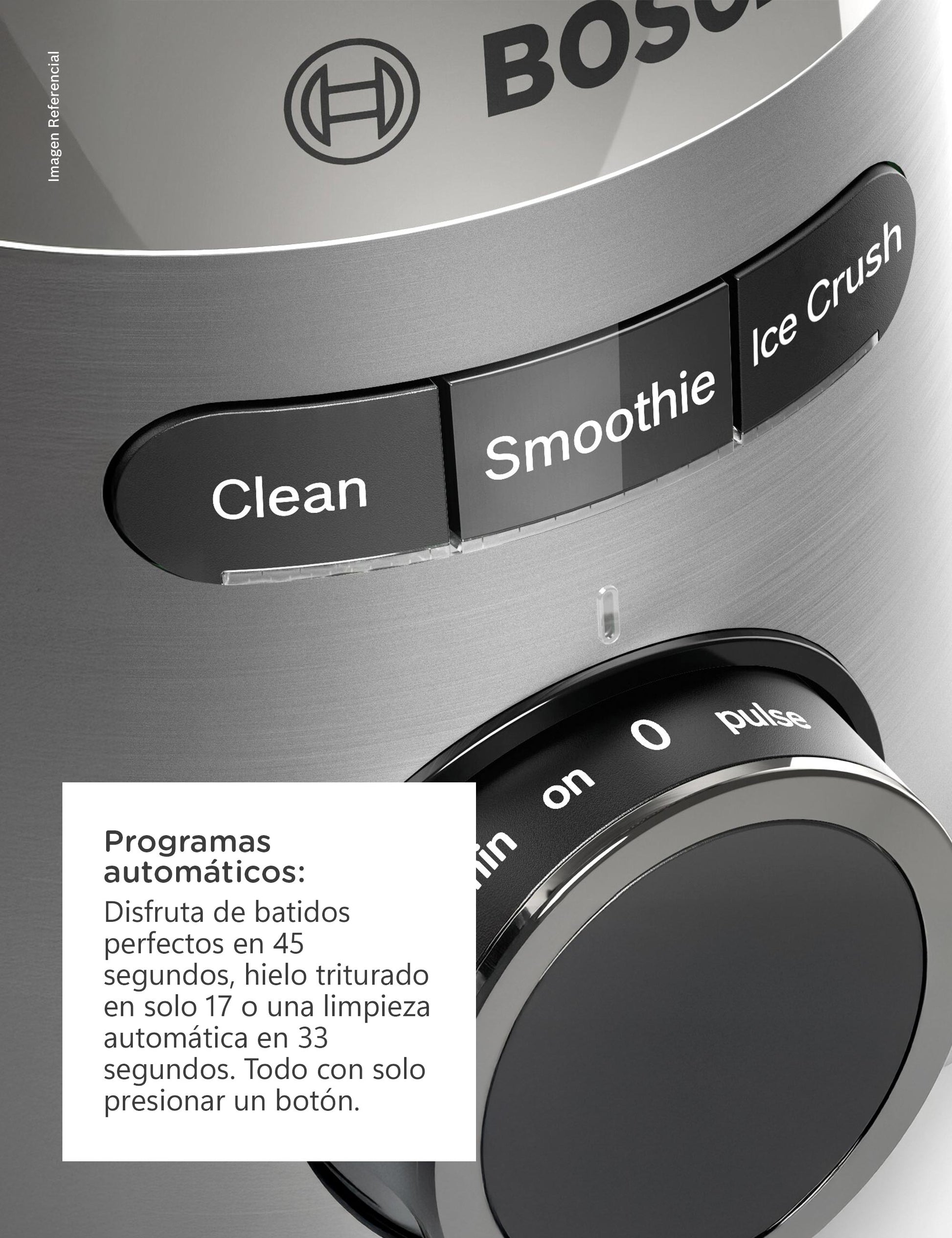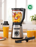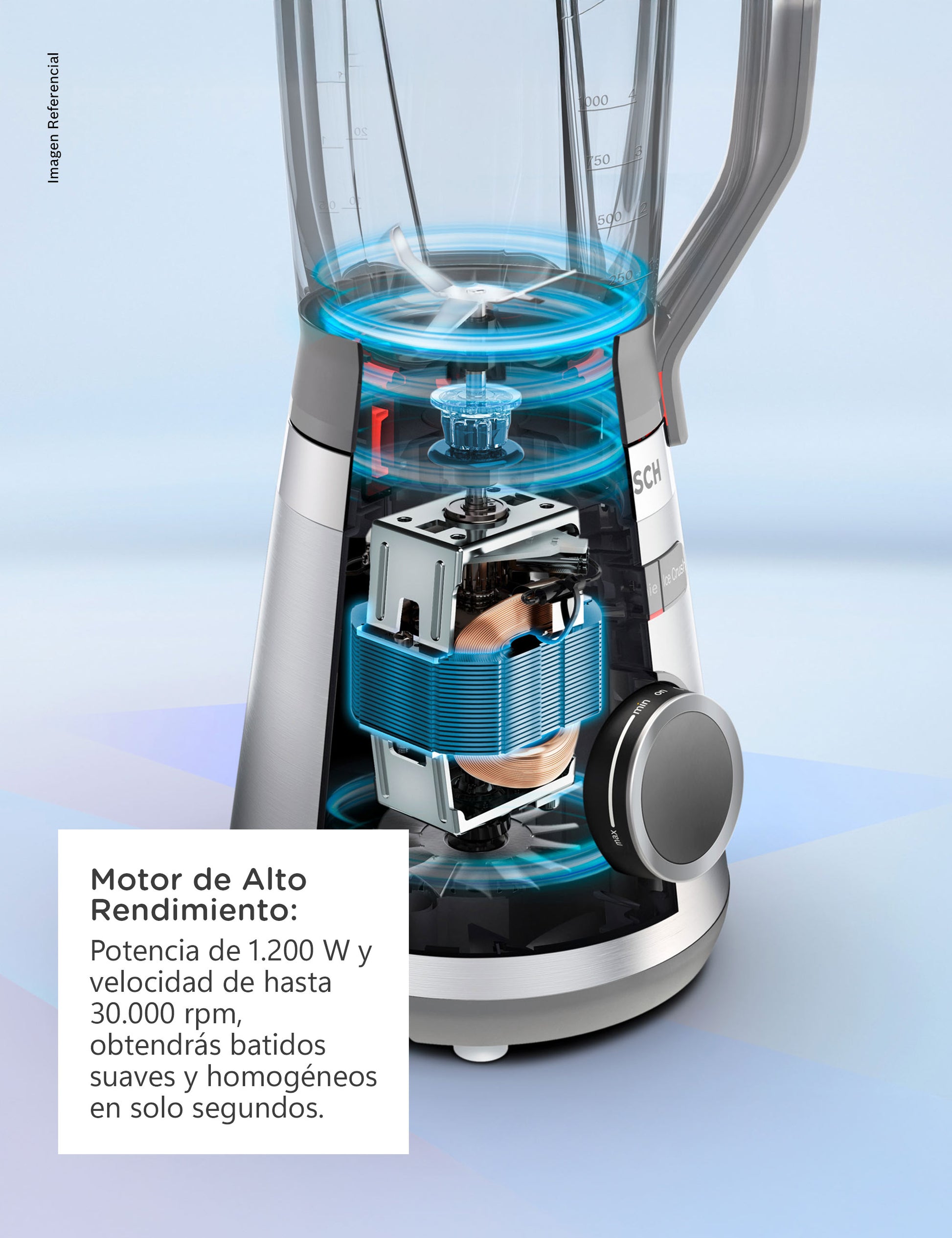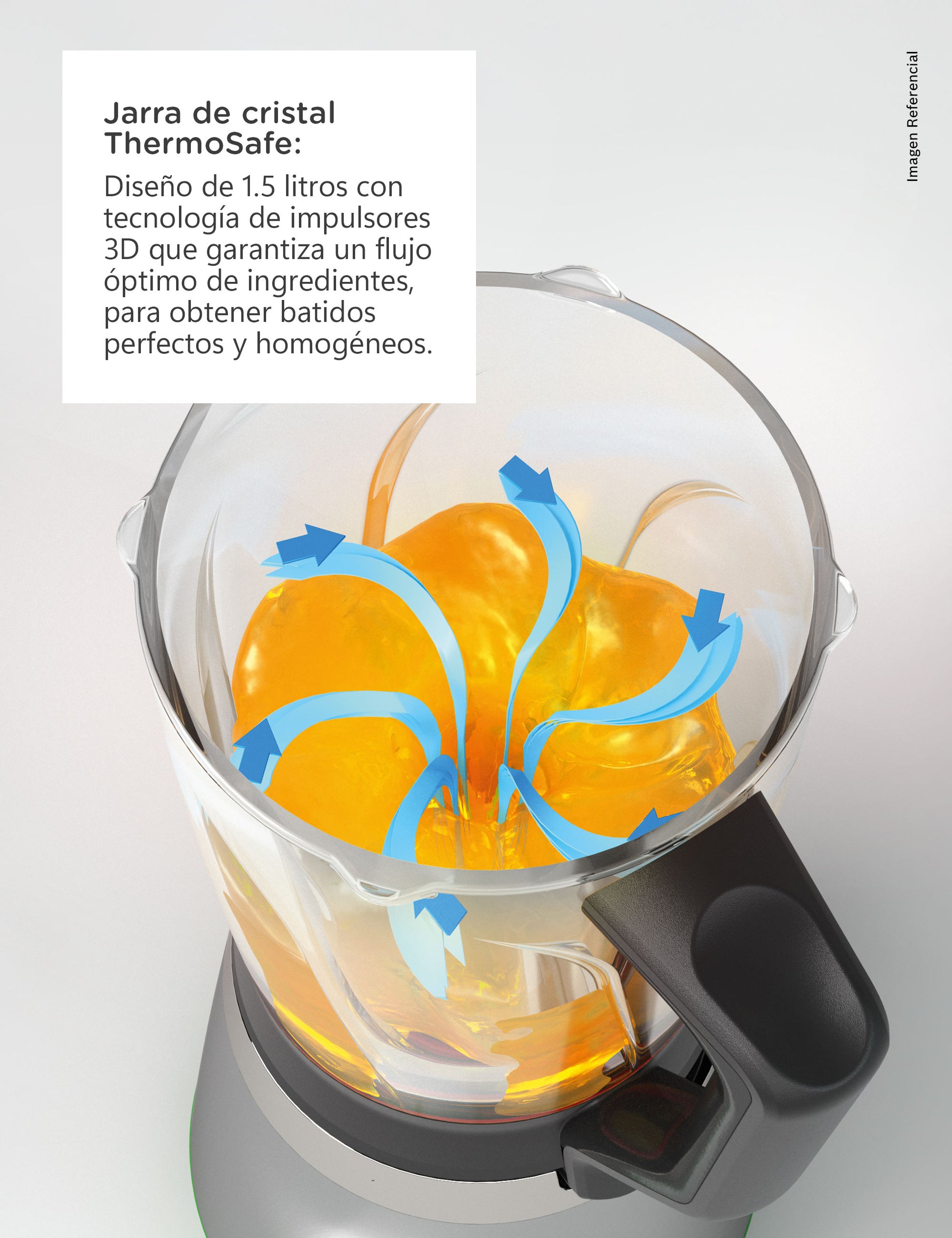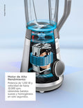 Fácil manejo diseñado en todas las funciones. Disfrute de armar la jarra sin esfuerzo con guía visual y la ventaja de ahorrar espacio al guardar cables dentro de la carcasa. También incluye un empujador de usos múltiples para introducir todos los ingredientes en el frasco durante el licuado, sin tener que abrir la tapa.Especificaciones técnicas