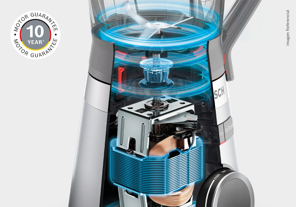 Con un motor Bosch garantizado por 10 años, esta licuadora de1200 W está diseñada para ofrecer rendimiento y durabilidad excepcionales. Su tecnología alemana asegura potencia constante, funcionamiento silencioso y resultados perfectos, incluso con los ingredientes más exigentes. No es solo una licuadora, es una inversión en confianza: una década de calidad Bosch que te acompaña cada día.