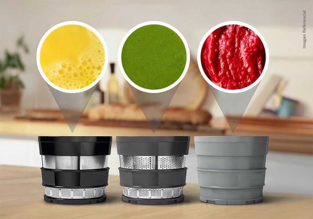 Su sistema con tres filtros intercambiables —fino, grueso y para helados— transforma tu VitaExtract en una fuente abundante de recetas naturales. Desde jugos frescos hasta batidos cremosos o postres helados sin azúcar añadido, podrás experimentar con frutas y vegetales de mil maneras, siempre con resultados consistentes y llenos de sabor.Limpieza sin esfuerzo, cocina siempre impecable