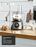 Procesador de alimentos potencia 900w, amplio bowl de 2.3L con 02 velocidades + pulsador. Potente motor rápido y función "pulse", los accesorios se pueden guardar en el recipiente y tenerlos a mano rápidamente. Gracias a las marcas de colocación en el producto, los accesorios se pueden montar de forma rápida.
