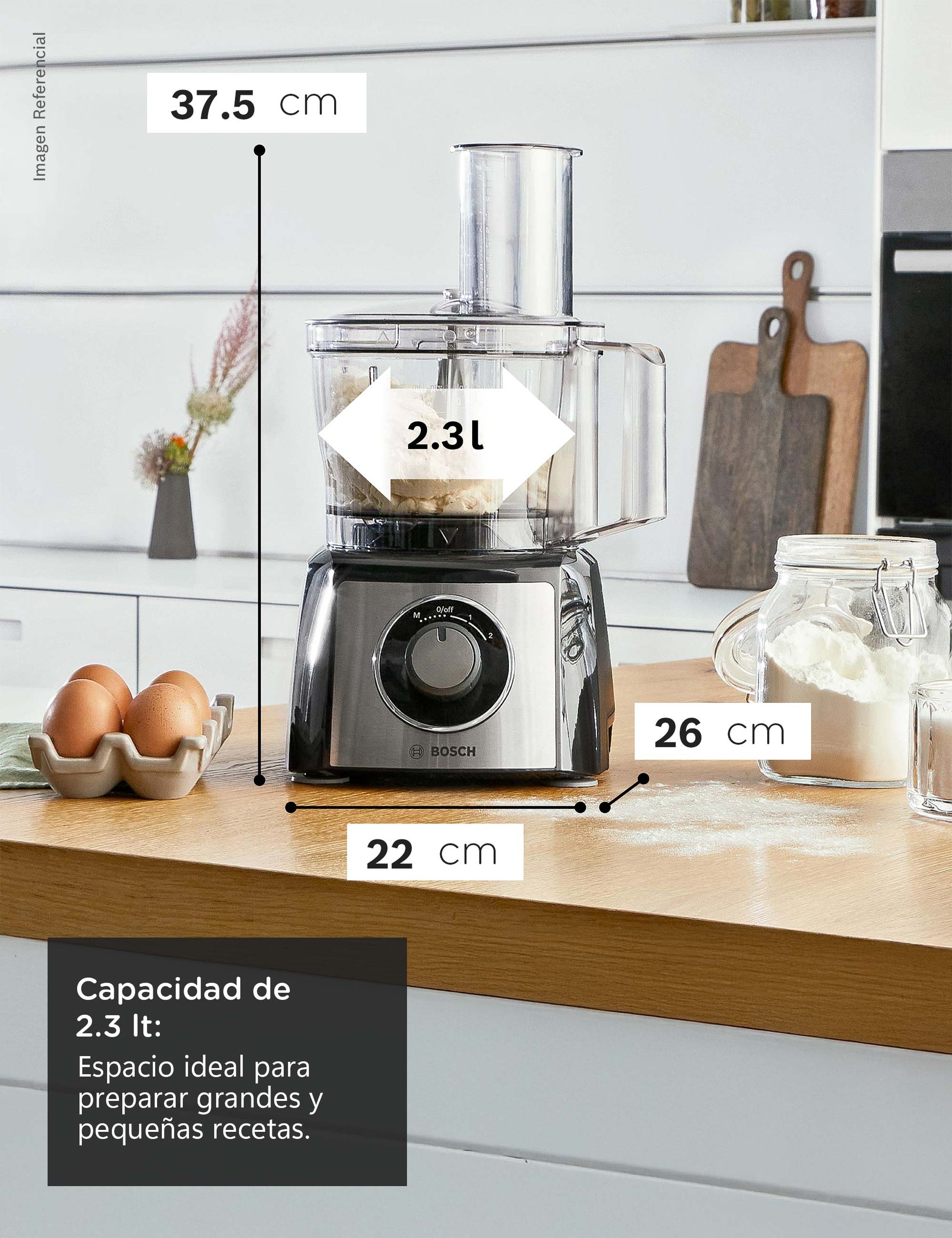 Con sus 900 watts de potencia, el Multitalent 3 Plus ofrece una mezcla perfecta entre fuerza y control. Su motor de alto rendimiento mantiene un desempeño constante incluso con los ingredientes más duros, garantizando cortes precisos, masas homogéneas y texturas profesionales. Es potencia Bosch diseñada para transformar tus recetas en experiencias gourmet.Amplia capacidad para crear sin límites