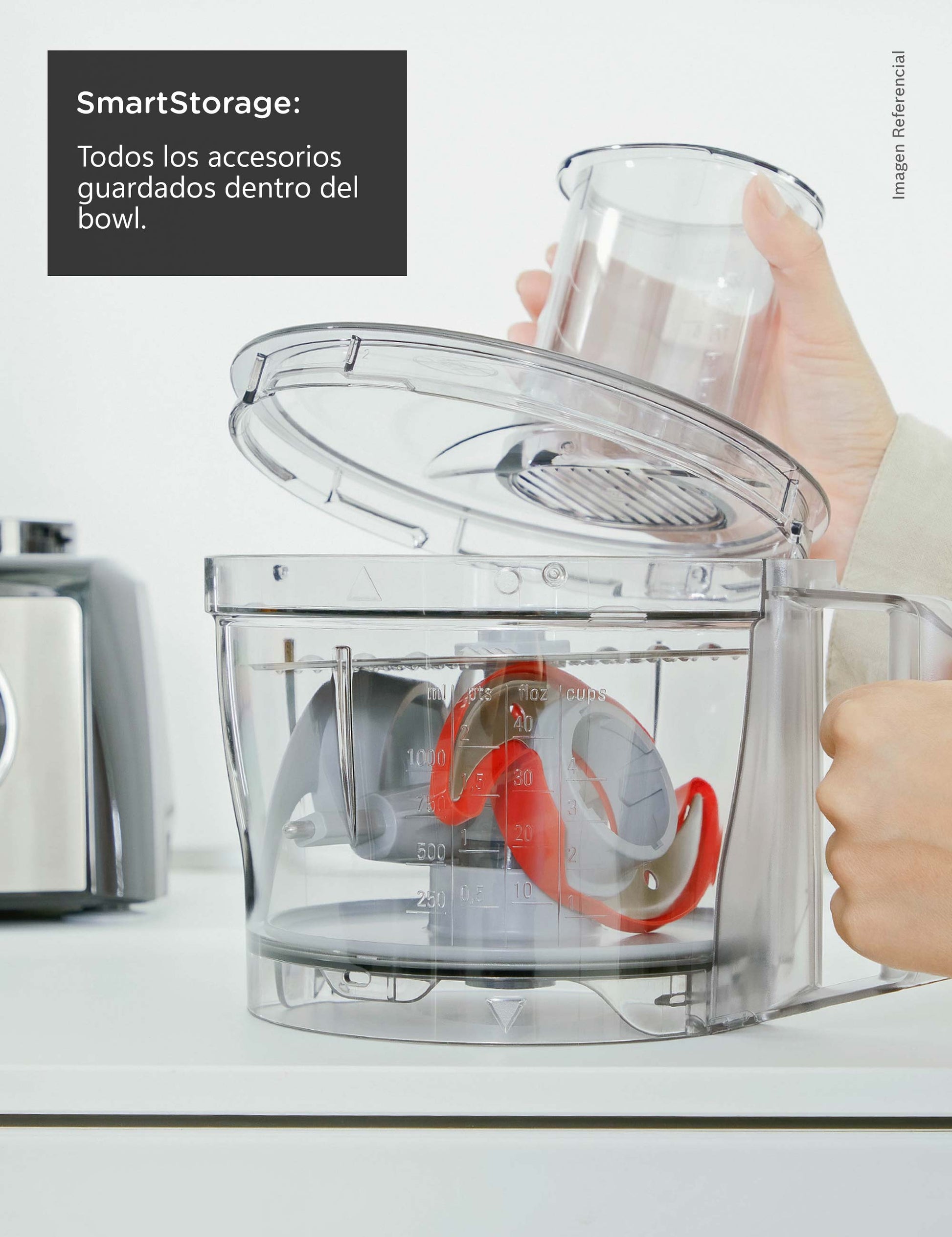El bowl de 2.3 litros con tapa transparente te da el espacio que necesitas para preparar desde masas familiares hasta mezclas ligeras para tus postres. Gracias a su diseño ergonómico y materiales resistentes, podrás trabajar cómodamente y sin interrupciones, disfrutando cada receta con resultados perfectos.Innovación que organiza tu cocina