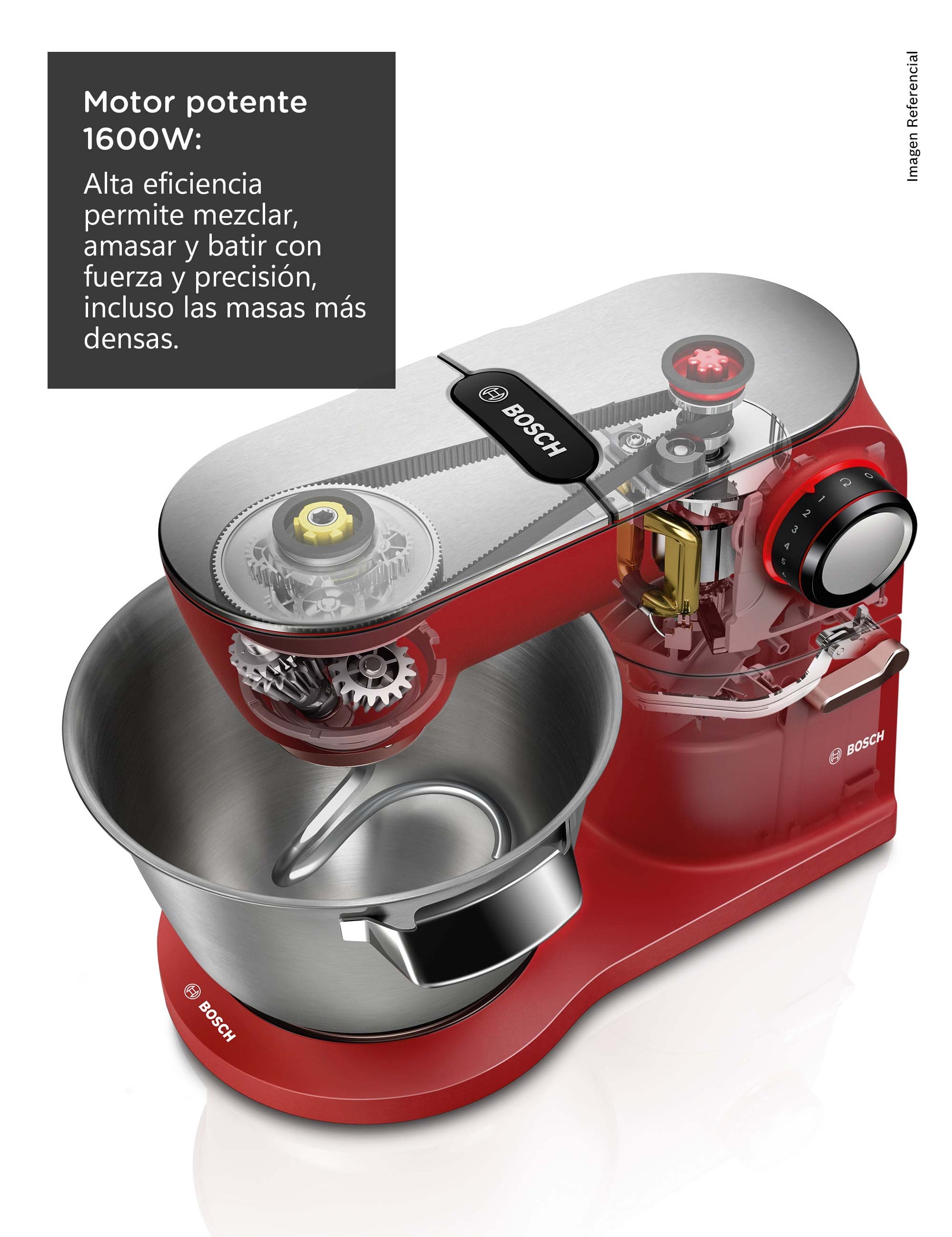 Motor extremadamente potente de 1.600 watts, adecuado para masas muy pesadas, grandes cantidades y batidos.Disfrute de la máquina a largo plazo