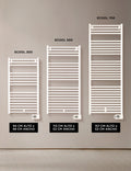 Toallero eléctrico Fondital Ecool con fluido. Con cuerpo en aluminio para menor inercia térmica. Electrónica con display LCD, programación diaria y semanal. Con termostato para selección de temperatura eficiente.